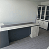 Mueble escritorio más estante multifuncional y mesa de reunión para oficina diseño bicolor